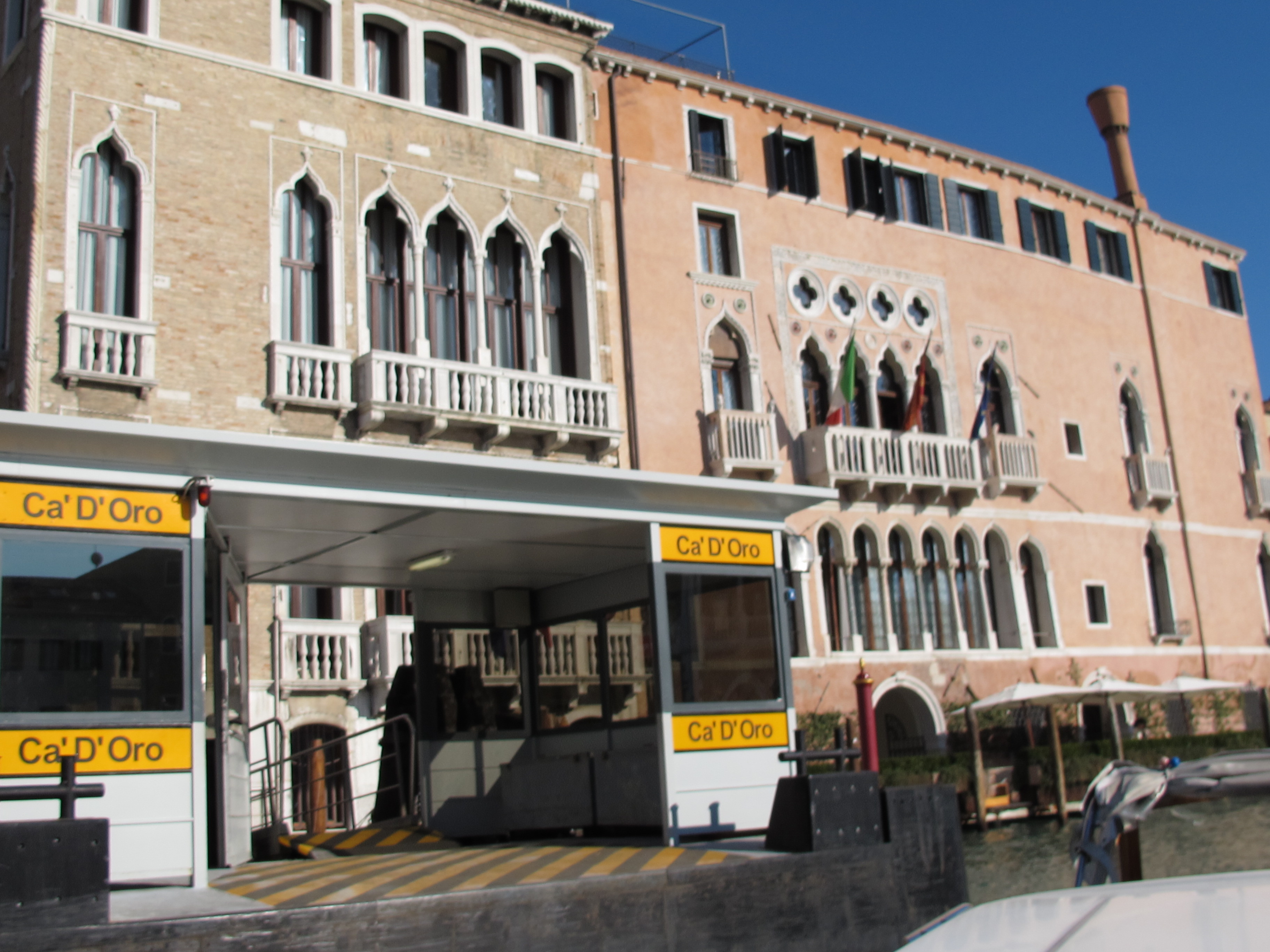 Arriving at our hotel – the pink building beside the Ca’D’Oro (the local water taxi stop).