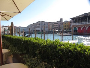 After spending many hours walking the districts in Venice, we concluded that the Ca Sagredo location on the Grand Canal was perfect for us. The Piazza San Marco, in the heart of the tourist area, was always congested and filled with tourists and tour groups. Piazzale Roma, the area where conventional transportation (roads and rails), was also extremely busy. The Ca Sagredo’s central location between Piazza San Marco and Piazzale Roma was much quieter yet, within a couple of minutes, we were in the shopping area on the way to the Rialto Bridge. There were many trattorias and other eateries for when we wanted to leave the hotel.