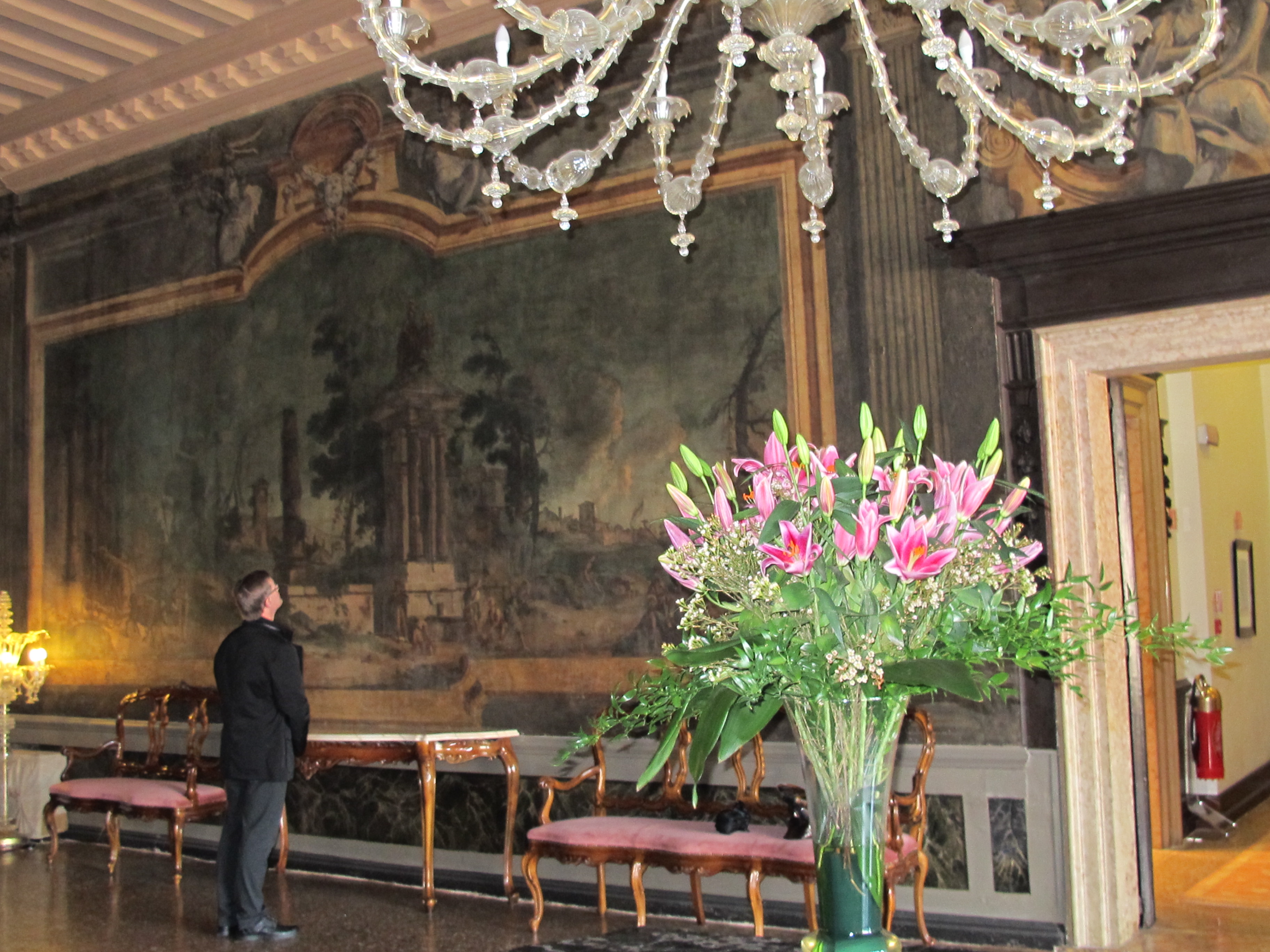 One painting displayed in the lounge area outside our room. The chandeliers are Murano glass. This area of the hotel is named The Portego and it is exquisite.