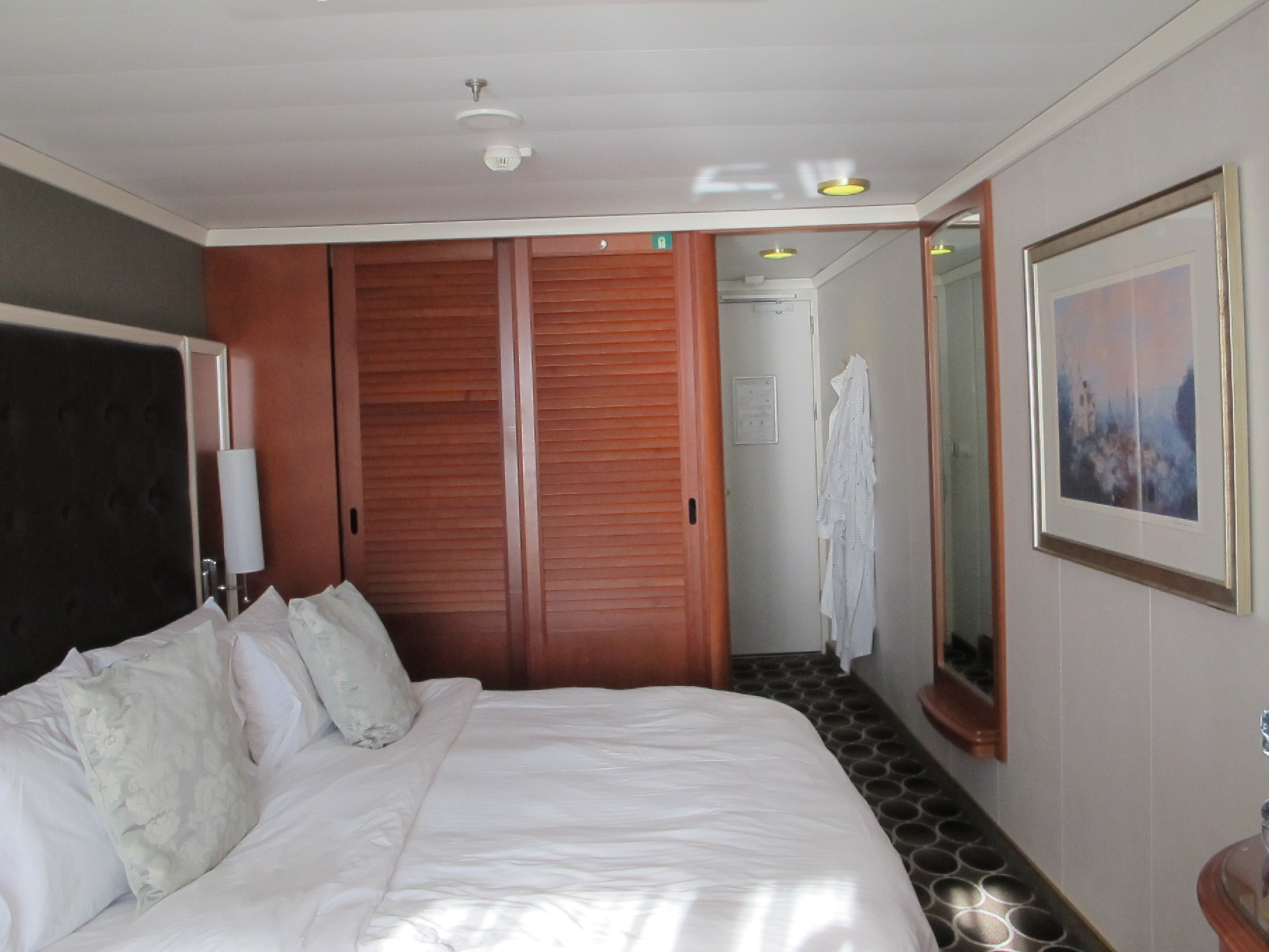 Part of our suite – the entrance door is closed; the walk in closet door is open. Check out the ceiling.